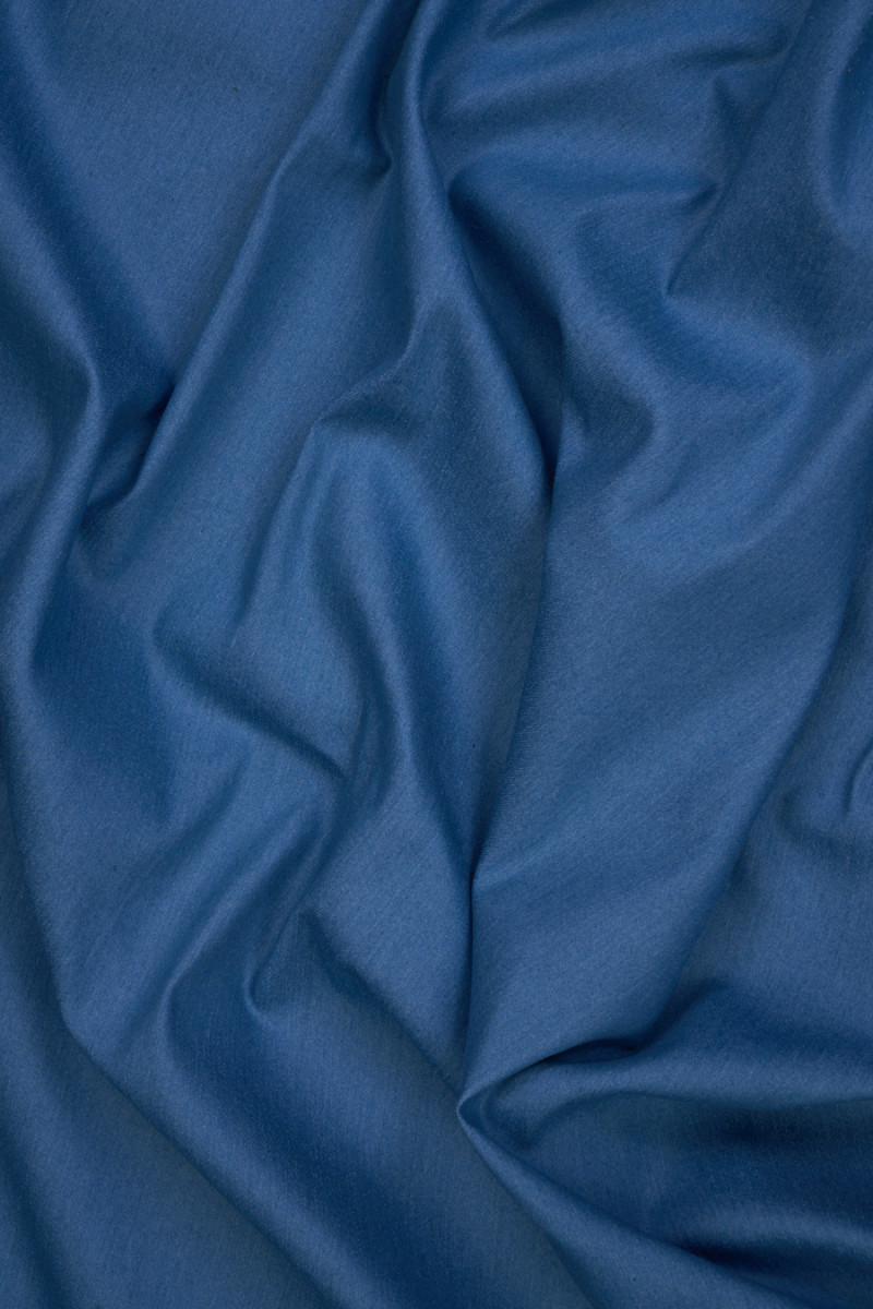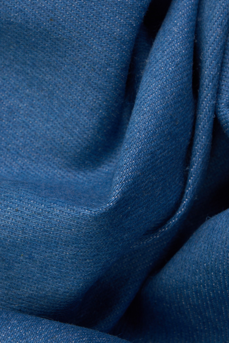 Itāļu džinss klasiskā zilā krāsā. Audums ir mīksts, elastīgs, vidēji biezs ar smalku grosgrain austu. Džinss ir ārkārtīgi universāls audums, kas lieliski piemērots kleitām, svārkiem, biksēm vai plānām katanām.