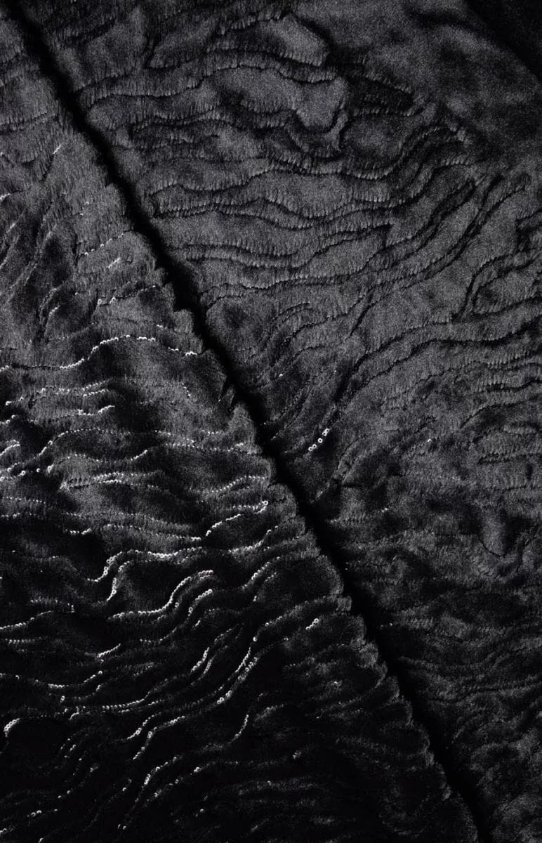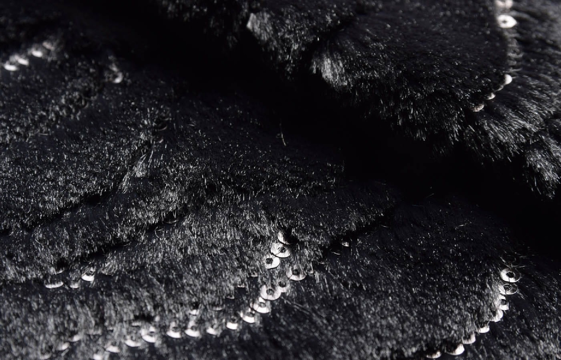 Eleganta tangenciālās kažokādas versija melnā krāsā ar maziem spīdīgiem fliteriem. Ideāli piemērots vestēm, mēteļiem, zagļiem.