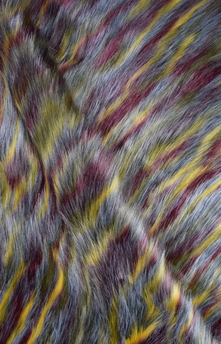 Krāsainas kažokādas, kas izgatavotas no poliestera šķiedrām ar garu kaudzi, lieliski atdarinot dabisko kažokādu.