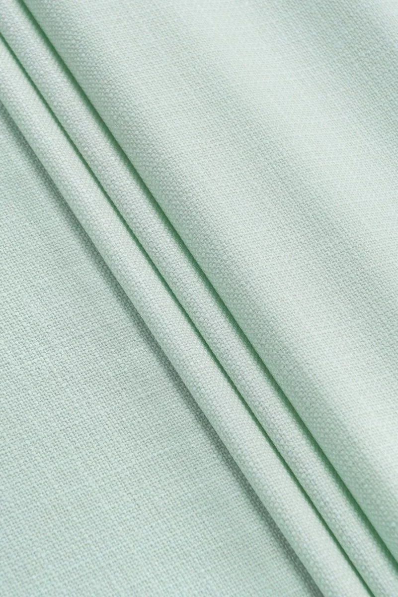 Itāļu vilna ar brīvāku, linu austu pasteļpistāciju krāsā. Mēs iesakām to kleitu vai platāku svārku šūšanai. Jūs varat izvēlēties vilnas oderi oderējuma sadaļā vai ziņot par savu vēlmi iegādāties pirkuma piezīmēs.