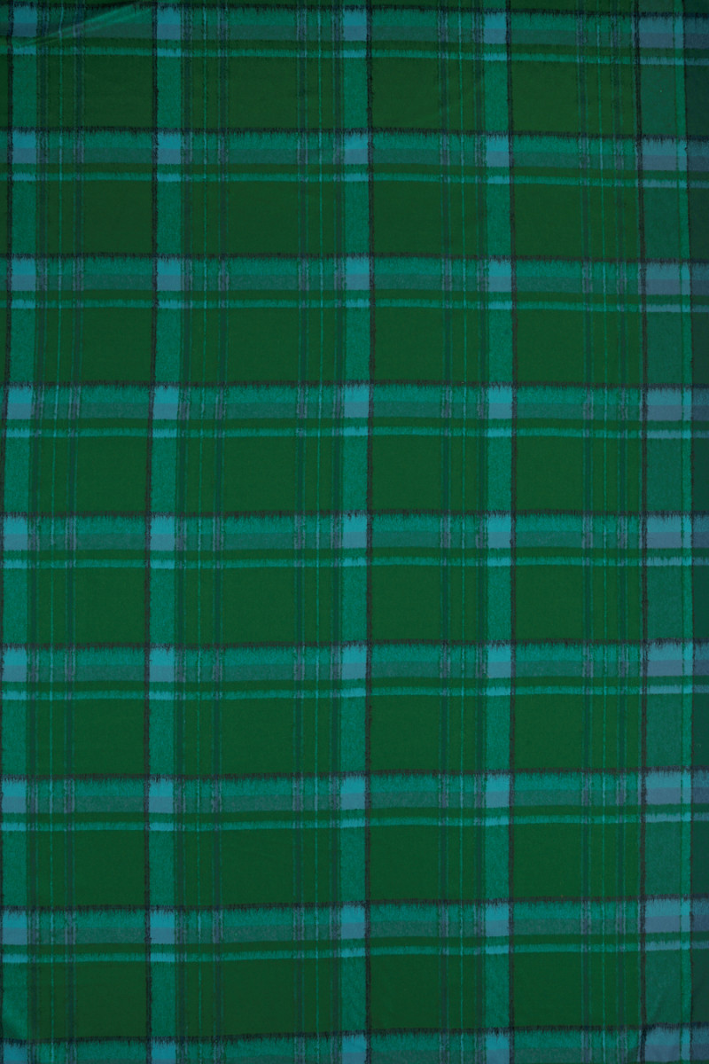 Itāļu kostīmu vilna ar mohēras maisījumu, liels čeka motīvs (apmēram 10 cm) zaļā un zilā krāsā. Rudens-ziemas sugu audums ar smalku kaudzi.