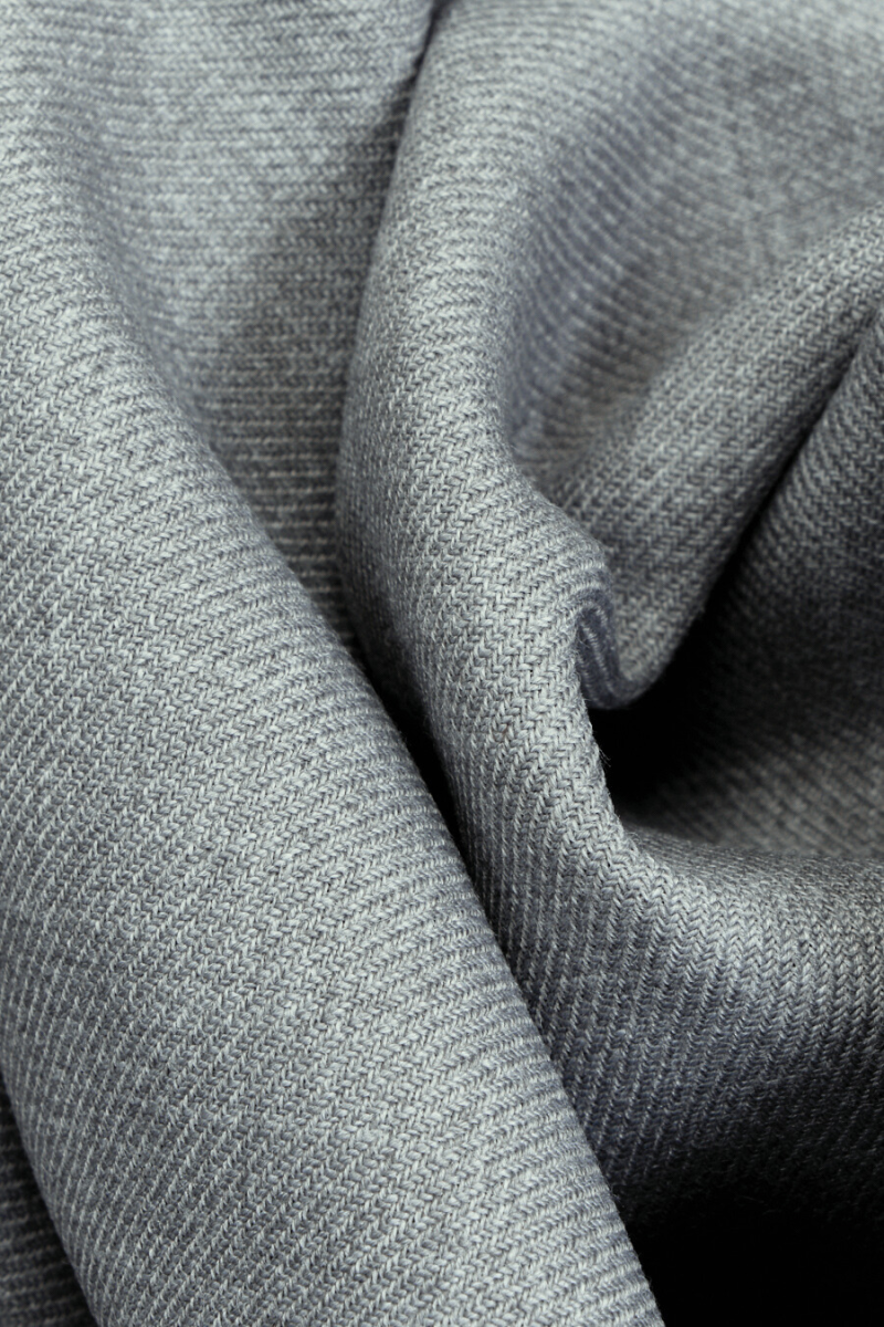 Itāļu kostīmu audums pelēkā krāsā - ļoti labas kvalitātes materiāls, mīksts, ideāli piemērots jebkuram gadalaikam. Biezāks audums ar gludu virsmu ar struktūru, kas atgādina pinuma austu. Audums ir nedaudz elastīgs, kaļams un elastīgs - lieliski piemērots mūžīgas, biezākas jakas, uzvalka, bikšu vai kleitas šūšanai.