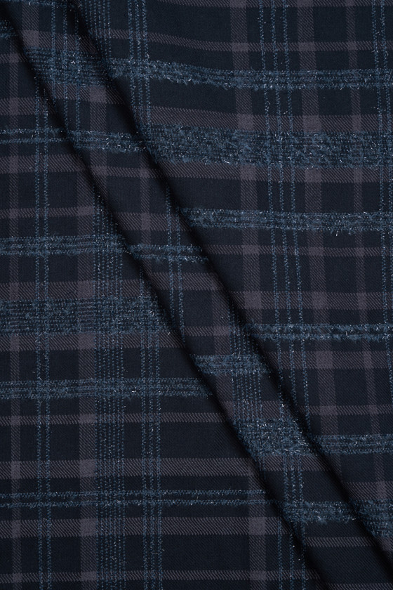 Itāļu kostīmu audums, kas austs no kokvilnas un vilnas tumši zaļā, zilā krāsā. Klasisks rūtains modelis tumši pelēkā krāsā, kas ir bagātināts ar spīdīgu pavedienu tumšā krāsā. Audums ir mīksts, viegls, neelastīgs un labi pieguļ. Ideāli piemērots kostīma, uzvalka, bikšu, svārku, kleitas šūšanai.