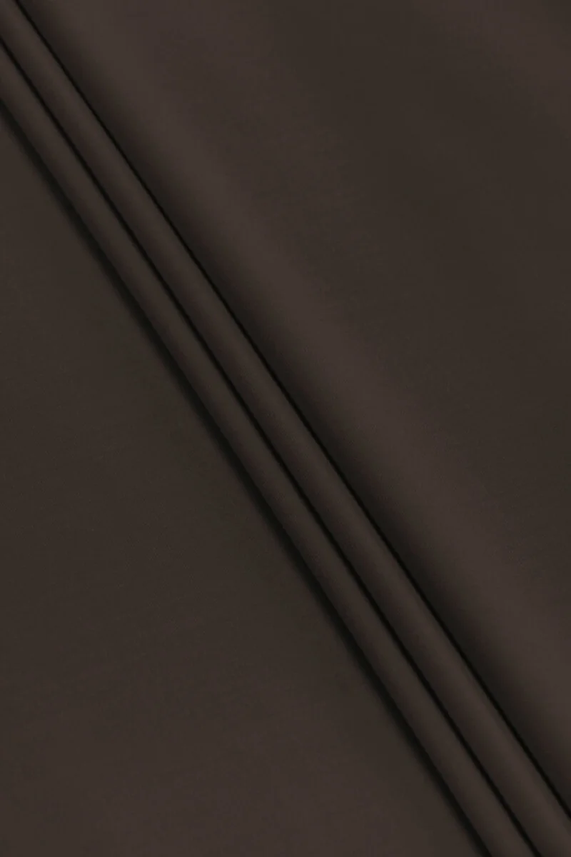 Itāļu kostīmu audums izgatavots no dabīgās vilnas ar poliamīda un elastāna piejaukumu ļoti tumši brūnā krāsā. Materiālam ir gluds, matēts pinums, tas ir elastīgs ar vidēju biezumu. Tas ir ideāli piemērots tādu apģērbu šūšanai kā: uzvalks, kostīms, kleita, svārki vai bikses.