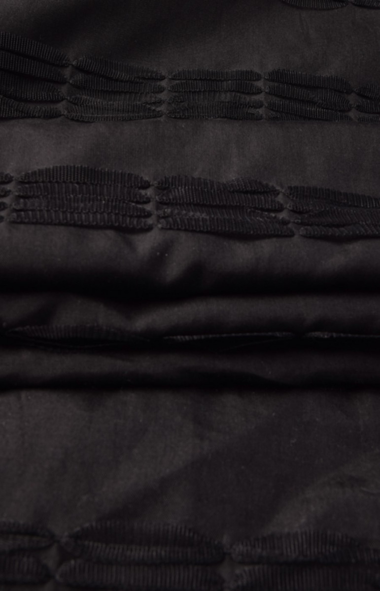 Interesants batistes priekšlikums, kas šūts ar tilla lentēm. Mēs iesakām to blūžu, kleitu vai svārku šūšanai. Melns.