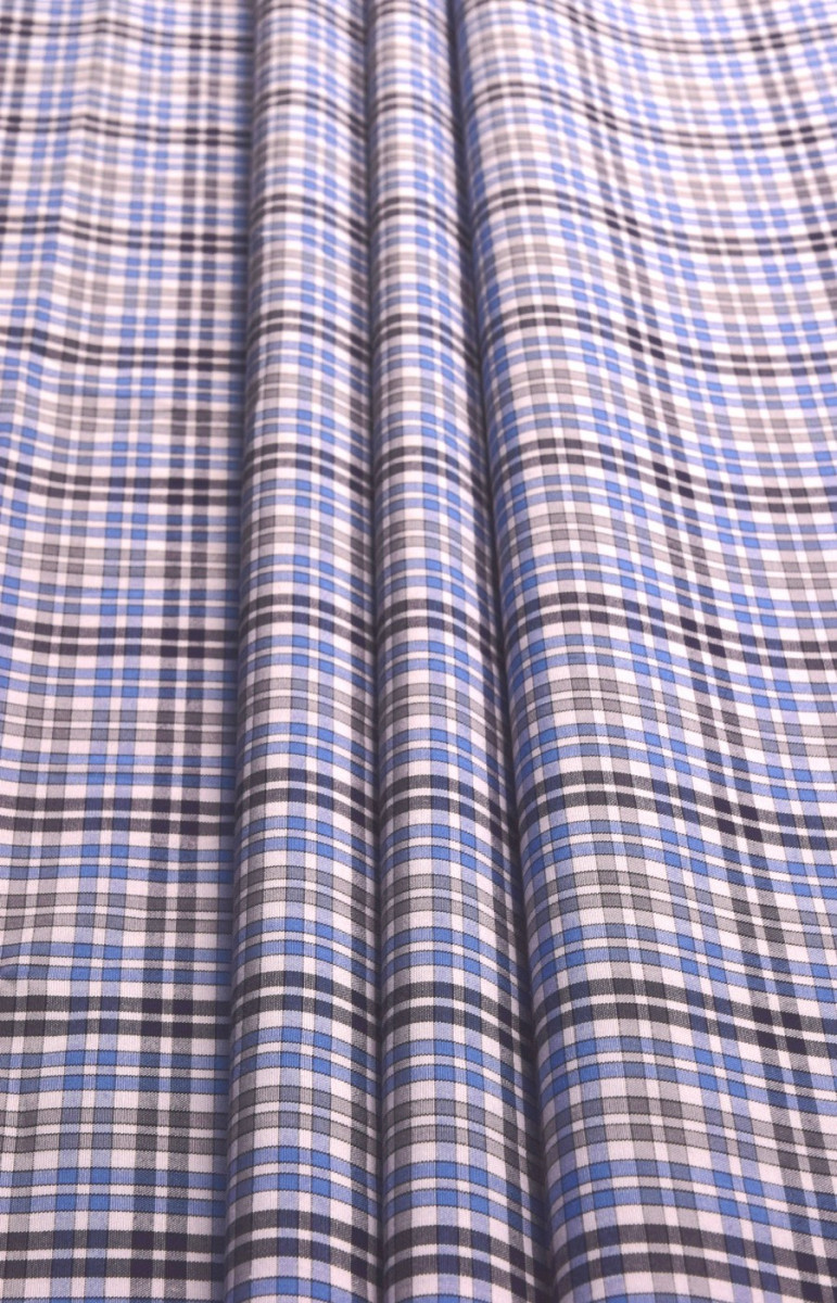 Krekla kokvilna ar baltu, grafīta un zilu smalku čeku ir 100% dabīga, pārstrādājama. No tā izgatavotās drēbes ir lieliski piemērotas karstām dienām. Mēs iesakām to kreklu, blūžu, kleitu vai svārku šūšanai.
