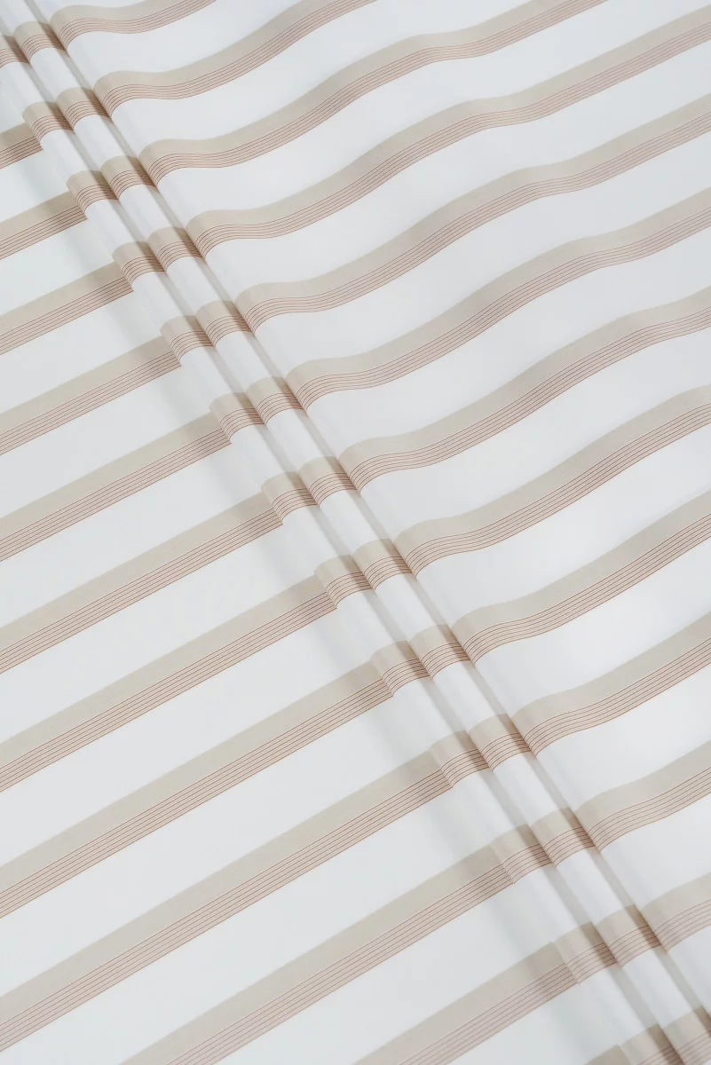 Itāļu kokvilnas krekls krēmkrāsā ar smilškrāsas svītru motīvu, 2 cm plats. Neelastīgs, nedaudz stīvs audums - ideāli piemērots krekla, blūzes, kleitas šūšanai.