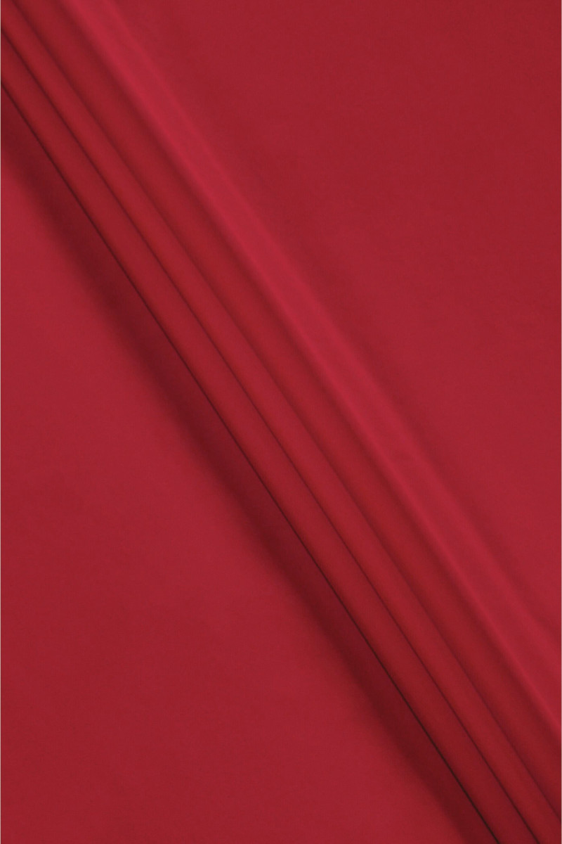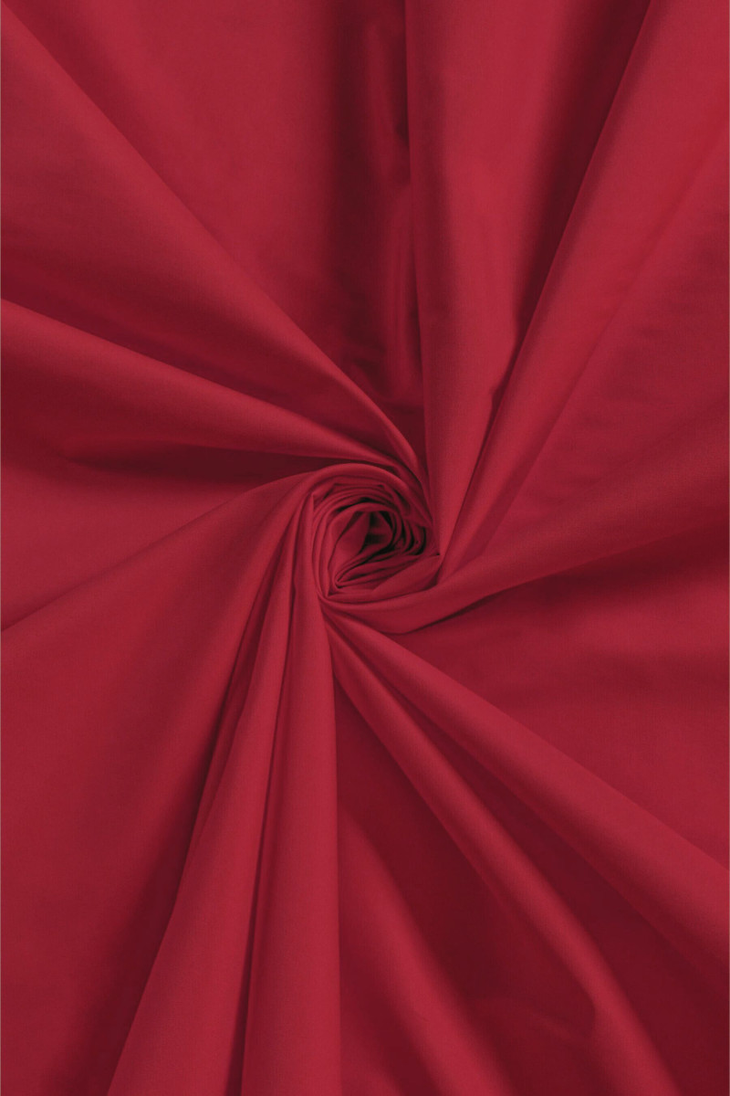 Itāļu kokvilnas audums ar elastāna pievienošanu tumši sarkanā krāsā. Elastīgs audums ar vidēju biezumu un gludu, matētu pinumu, kas paredzēts kleitas, svārku vai bikses šūšanai. Dabīgs audums ar ļoti labu kvalitāti, elastāna pievienošana padara to ērtāku lietošanu un mazāk grumbas. Neaizvietojams audums pavasarī un vasarā.