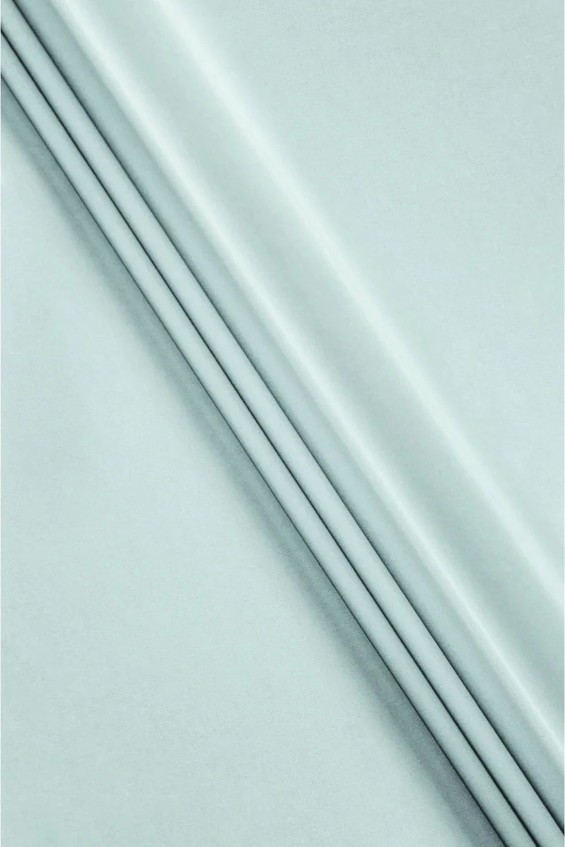 Itāļu kokvilnas audums ar elastāna pievienošanu gaišā, pasteļtirkīzā. Elastīgs audums ar vidēju biezumu un gludu, matētu pinumu, kas paredzēts kleitas, svārku vai bikses šūšanai. Dabīgs audums ar ļoti labu kvalitāti, elastāna pievienošana padara to ērtāku lietošanu un mazāk grumbas. Neaizvietojams audums pavasarī un vasarā.