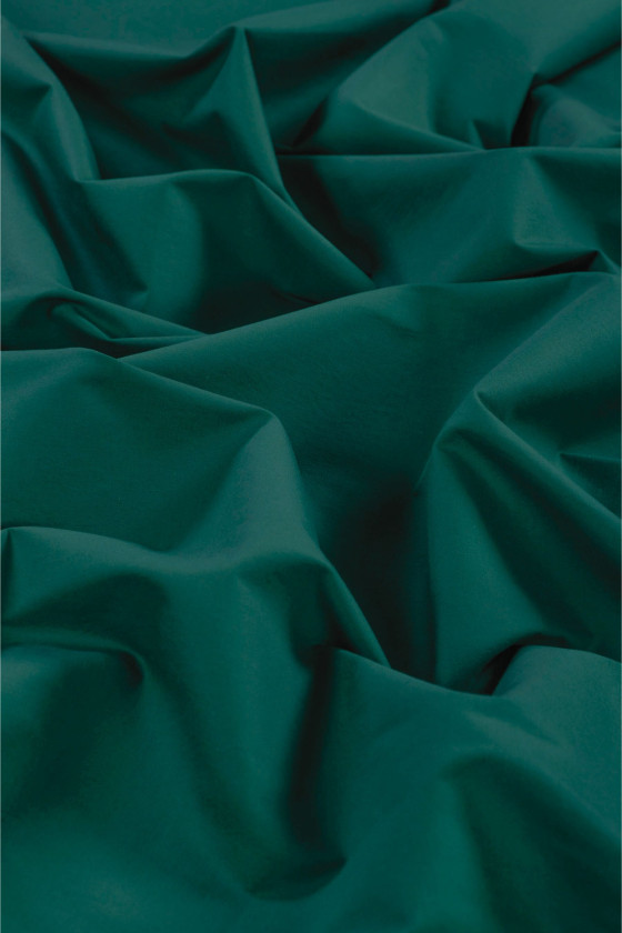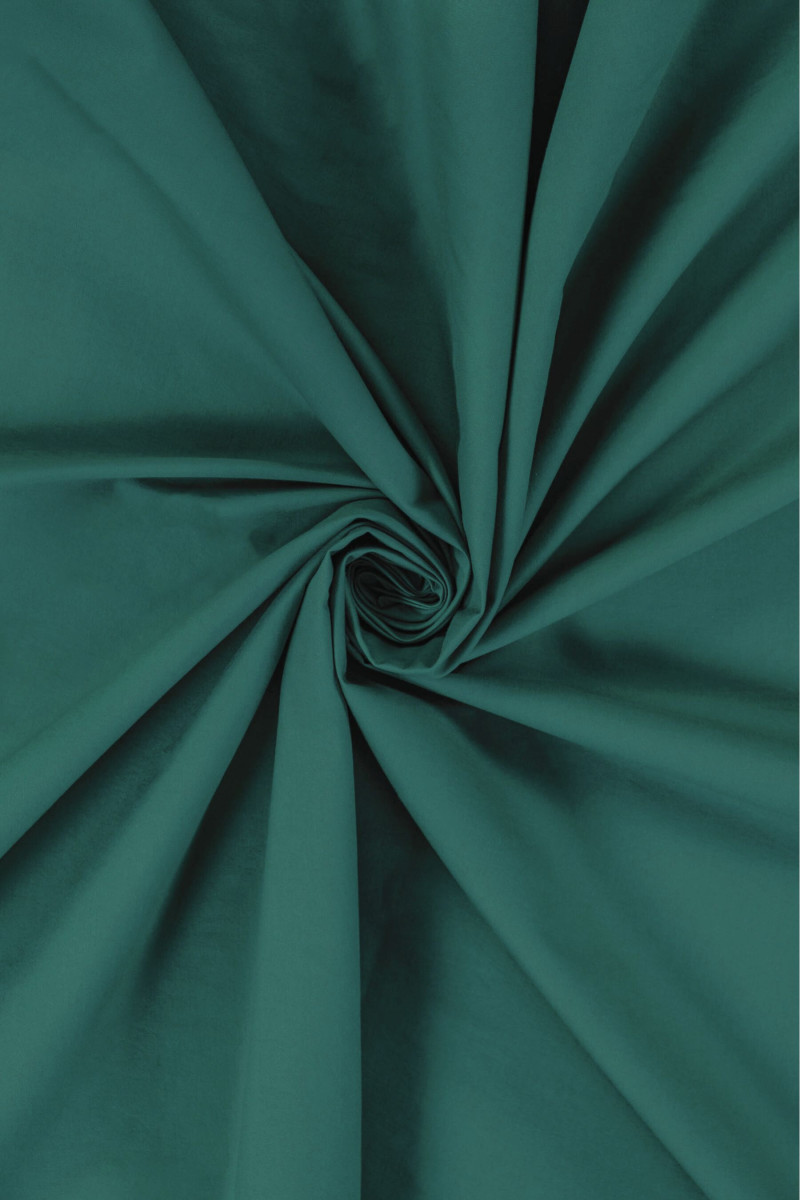 Itāļu kokvilnas audums ar elastāna pievienošanu zilganzaļā krāsā. Vidēja biezuma elastīgs audums un gluds, smalki spīdīgs pints, kas paredzēts kleitas, svārku vai bikšu šūšanai. Dabīgs audums ar ļoti labu kvalitāti, elastāna pievienošana padara to ērtāku lietošanu un mazāk grumbas. Neaizvietojams audums pavasarī un vasarā.