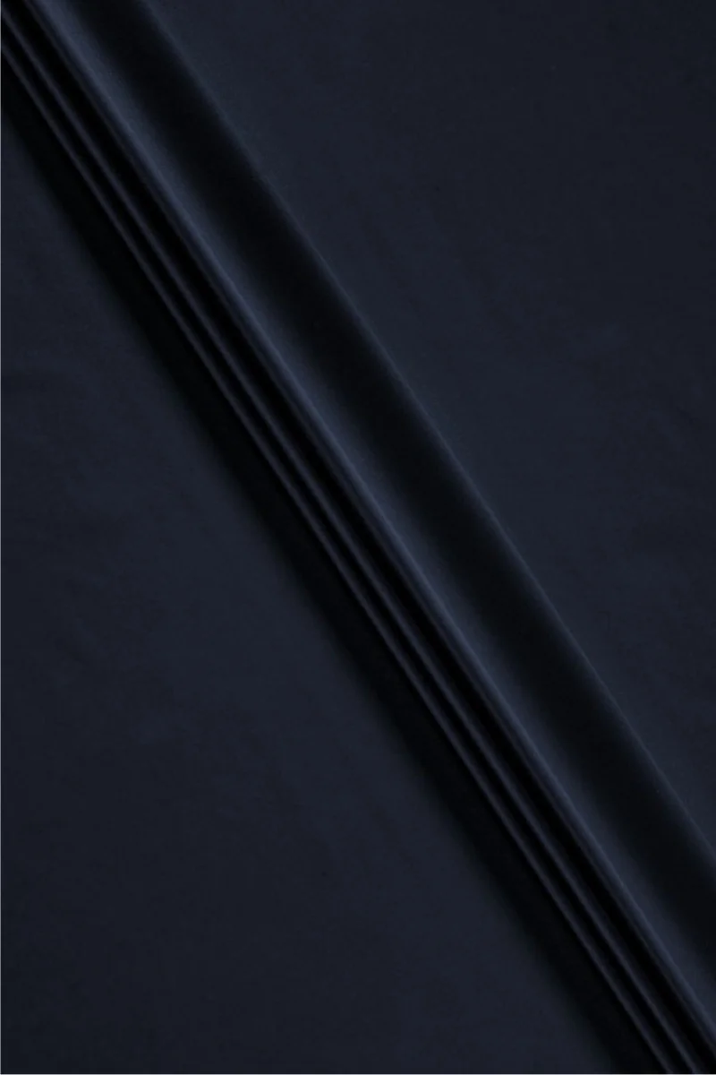 Itāļu kokvilnas audums ar elastāna piedevu tumši tumši zilā krāsā. Elastīgs audums ar vidēju biezumu un matētu pinumu, kas paredzēts kleitas, svārku vai bikšu šūšanai. Dabīgs audums ļoti labā kvalitātē, elastāna pievienošana padara to ērtāku lietošanu un mazāk grumbas. Audums ir neaizvietojams pavasarī un vasarā.
