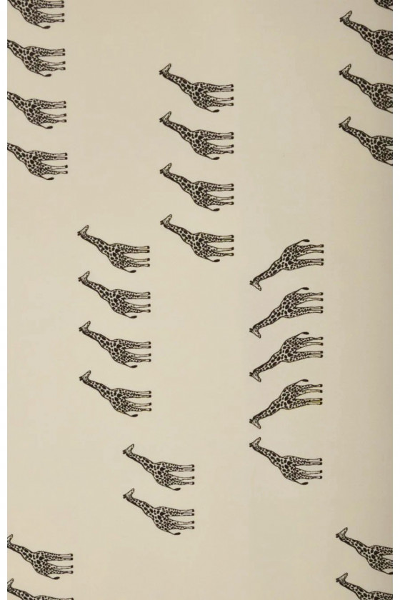 Itāļu kokvilnas audums ar elastāna piejaukumu vaniļā ar melno žirafu motīvu, 3,5 cm liels. Elastīgs, biezāks, necaurspīdīgs audums - lieliski piemērots kleitas, svārku, bikšu vai šortu šūšanai.