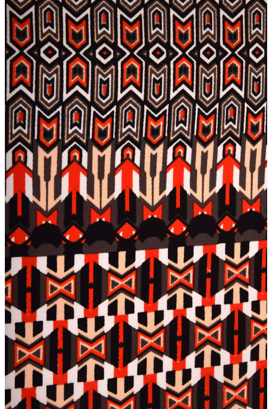 Kokvilna ar elastānu ar Āfrikas rakstu ir vidēji biezs necaurspīdīgs audums.