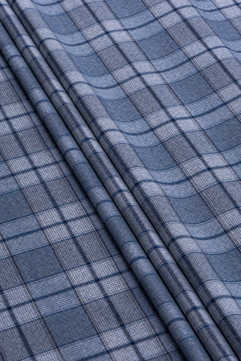Wełna w kratę niebiesko-granatową KUPON 110 cm