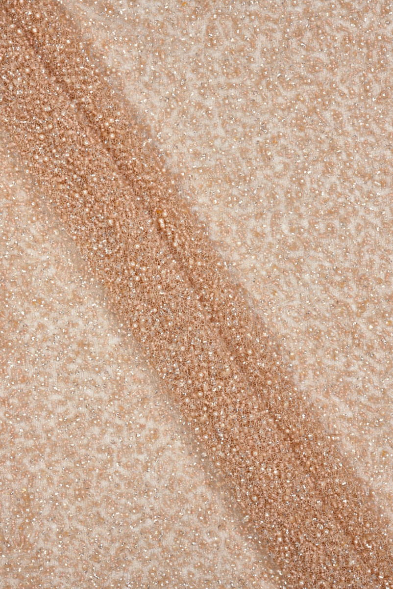 Itāļu galantērijas lente ecru krāsā. Krelles un fliteri ziedu un lapu veidā ir šūti uz mīksta tilla. Ideāli piemērots kāzu un vakarkleitu apdarei.