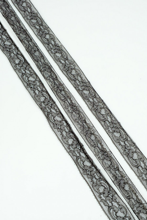 Itāļu mežģīņu lente melnā krāsā. Plāns, maigs ar ziedu motīvu. Ideāli piemērots blūžu, kleitu, naktsveļas apdarei.