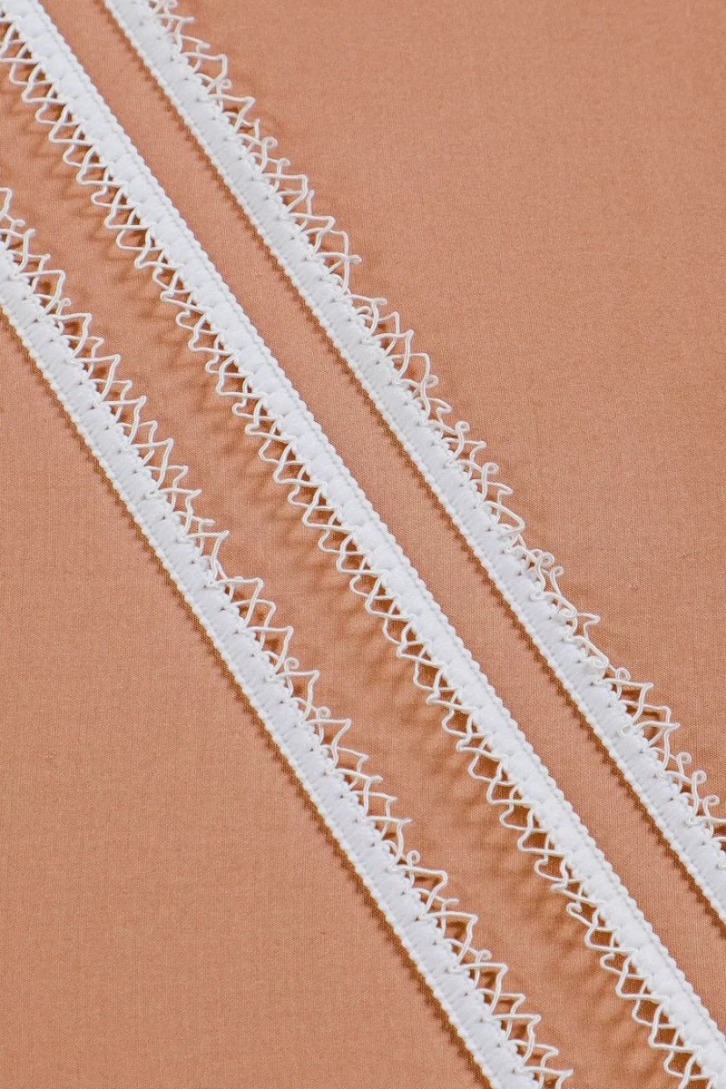Itāļu galantērijas lente ecru krāsā. Izgatavots no elastīgas lentes, kurai tika piešūts auklas volāns. Ideāli piemērots kāzu un kokvilnas audumu apdarei.