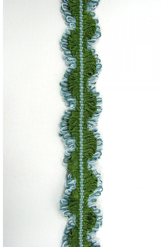 Galantērijas līmlente izgatavota no divām savstarpēji saistītām virtenēm – zaļā un gaiši zilā krāsā.