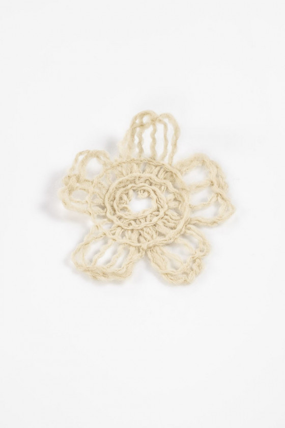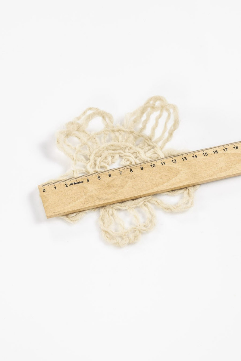 Itāļu ziedu aplikācija bēšā, izgatavota no dabīgas vilnas. Platums: 12 cm.