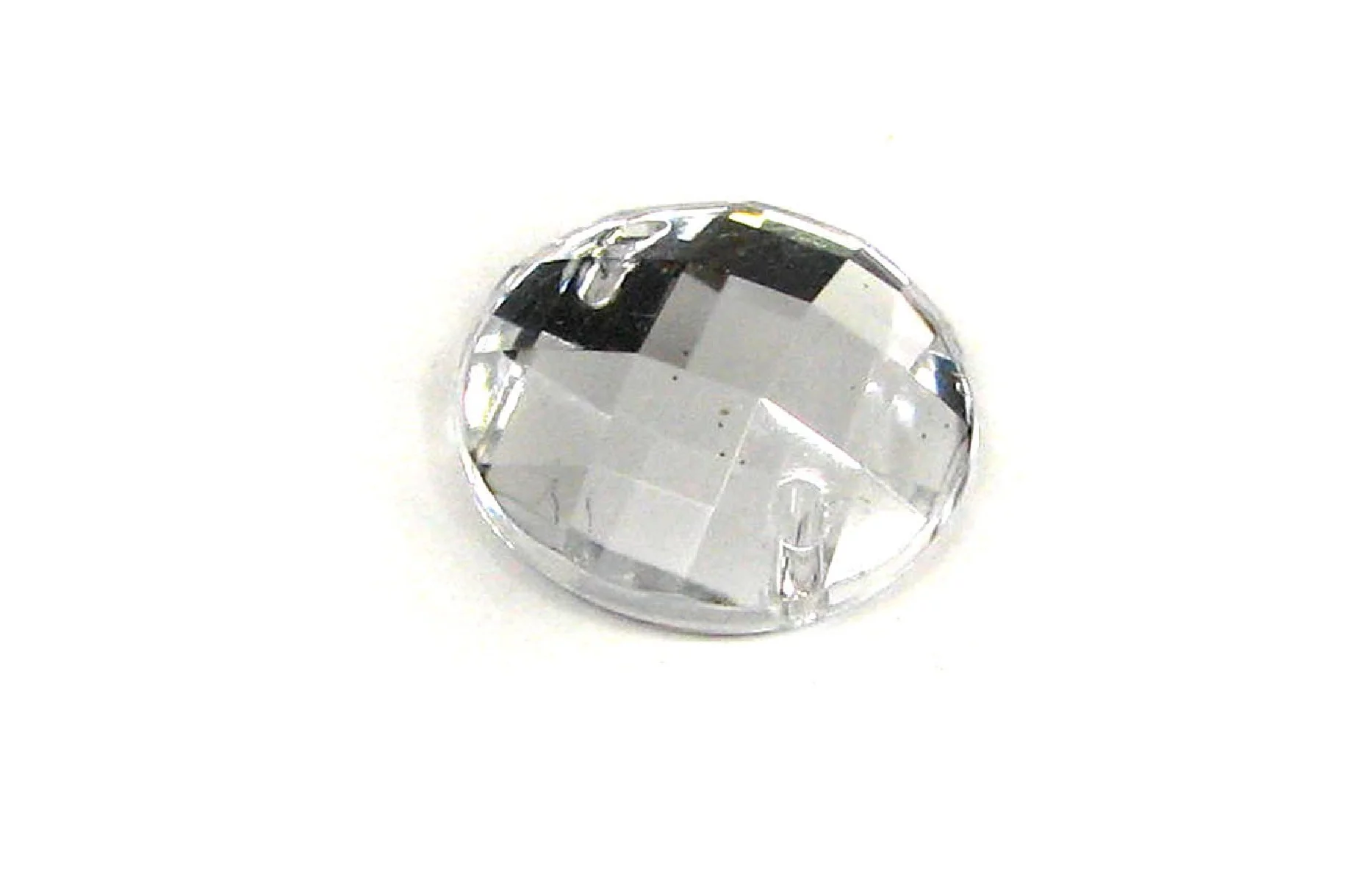 Apaļi rhinestones, kas jāšuj, atdarinot dabisko kristālu. Izmērs aptuveni 12 mm.