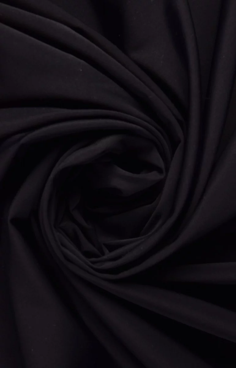 Itāļu elastīgais trikotāžas audums no likra tipa melnā krāsā. Audums ar blīvu austu un gludu, matētu struktūru, ļoti elastīgs - ideāli piemērots cilvēkiem, kuriem patīk ķermenim pieguļošs apģērbs un mūžīgas krāsas. Tas ir lieliski piemērots oderei, piemēram, mežģīnēm un arī apakšveļas šūšanai, jo tas ir ērts un ātri žūstošs.