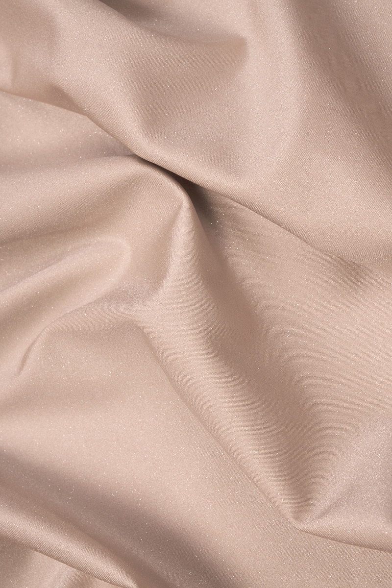 Itāļu elastīgā likra trikotāžas audums kailā bēšā krāsā ar sudraba mirdzumu (nenokrīt). Audums ar blīvu, cieši austu, ļoti elastīgu - ideāli piemērots cilvēkiem, kuriem patīk ķermenim pieguļošs apģērbs. Tas ir lieliski piemērots deju vai vakara apģērbu, kā arī peldkostīmu šūšanai, jo tas ir ērts un skaisti spīdīgs.