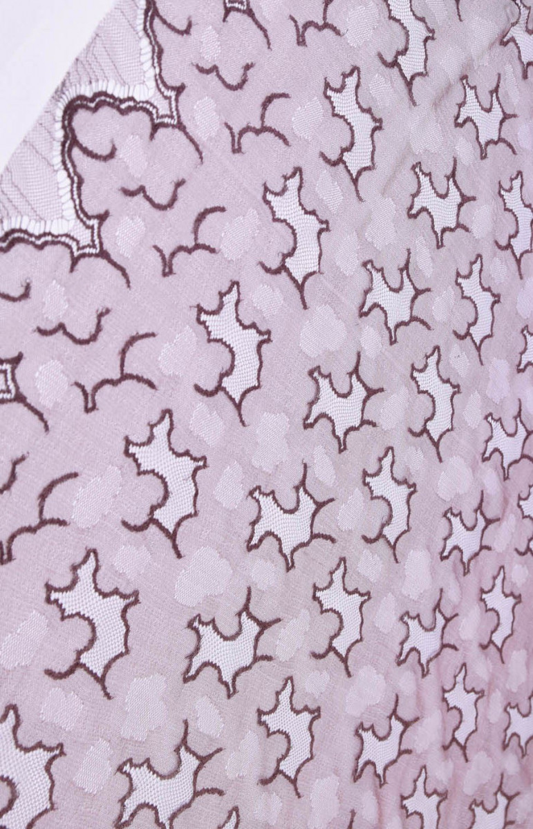 Plānas, maigas mežģīnes bordo brūnā krāsā. Pabeigts ar zobu abās pusēs. Audums ir lieliski piemērots blūzēm un kleitām.