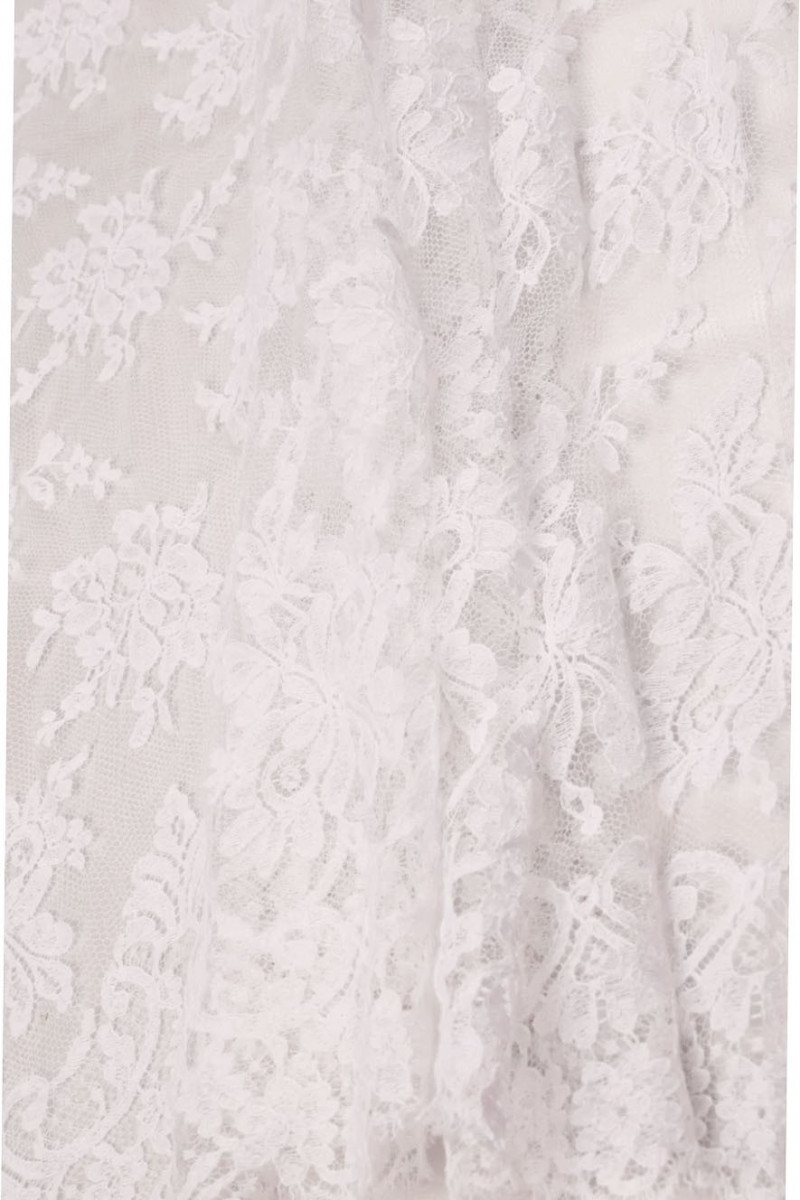 Pēdējais kupons 125cm*90cm kāzu mežģīnes ar klasisku, blīvu baltu krēmkrāsas rakstu, pabeigts ar zobu abās pusēs. Mežģīnes ir maigas, mīkstas.
