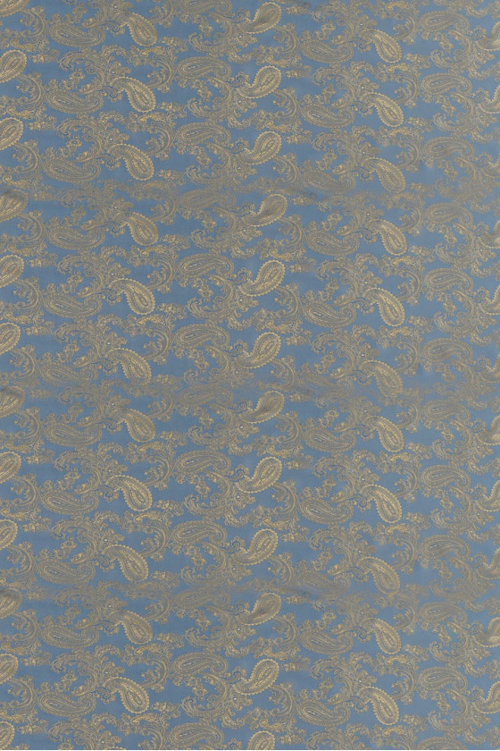 Itāļu žakarda odere ar austrumu motīvu - dzeltens un zils divtoņi. Audums nav elastīgs, nedaudz spīdīgs. Ideāli piemērots mēteļu, jaku, vestu, jaku oderēšanai.
