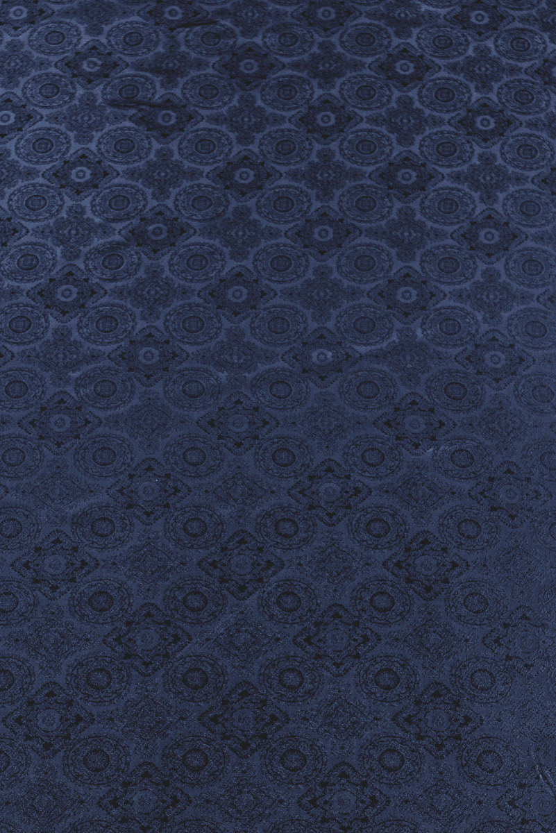 Itāļu žakarda odere zili violetā krāsā. Modernākais austrumu rotājumu modelis. Audums nav elastīgs, nedaudz spīdīgs. Ideāli piemērots mēteļu, jaku, vestu, jaku oderēšanai.