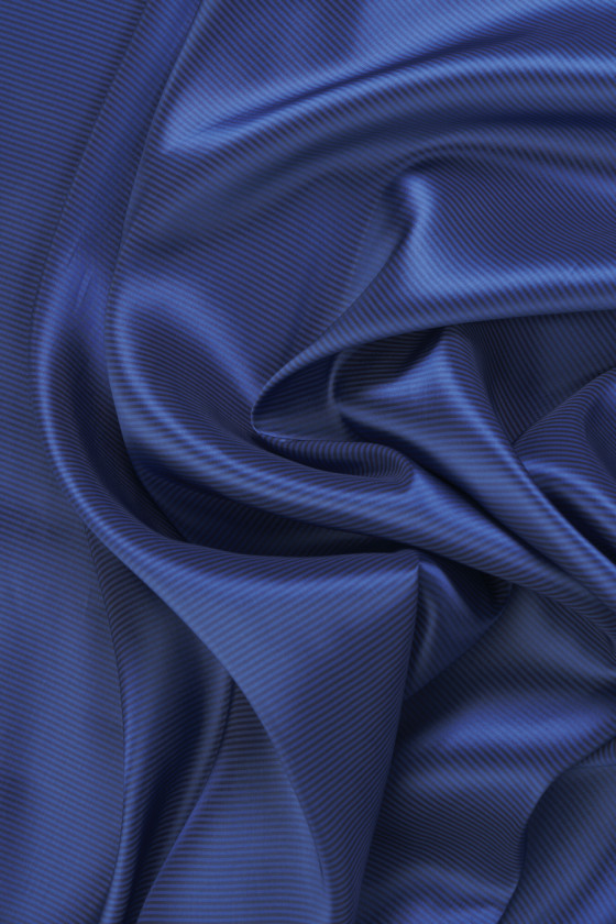 Itāļu odere 100% viskoze tumši zilā krāsā ar svītru motīvu melnā un brūnā krāsā. Audums nav elastīgs, ar ļoti cēlu spīdumu. Tā dabiskais sastāvs padara to perfektu kā jakas vai mēteļa oderi.