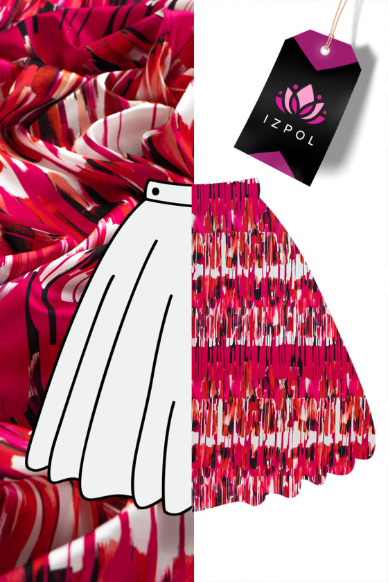Itāļu poliestera sarža audums ar krāsainiem rakstiem rozā, sarkanā, melnā un baltā krāsā. Twill ir audums ar pinuma austu, mīkstu, ļoti izturīgu, maigi stīvu, lai tas derētu. Lieliski piemērots krekla, kleitas, svārku vai šalles/šalles šūšanai.