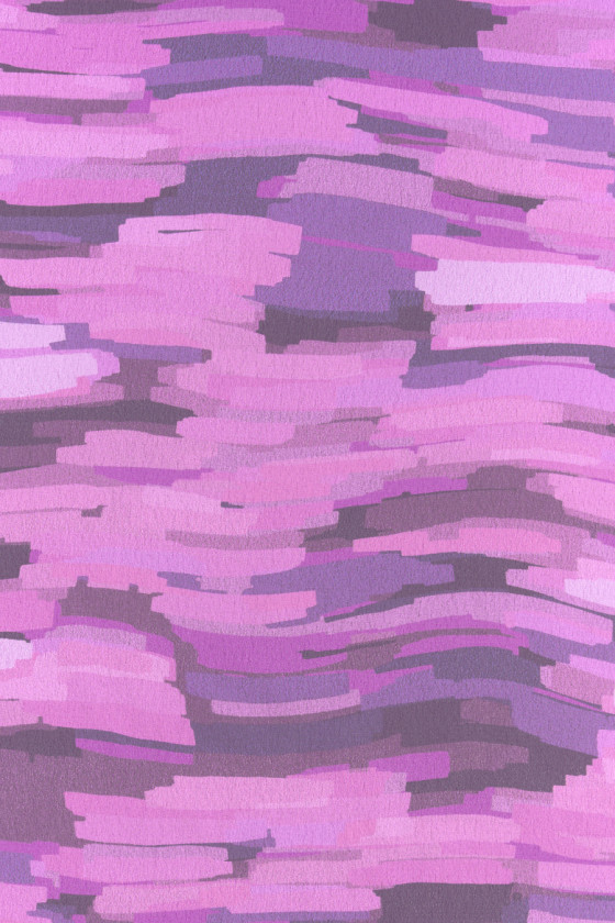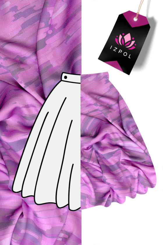 Premium itāļu poliestera satīns ar iedomātu, horizontālu rakstu, kas atgādina otas triepienus. Viss tiek uzturēts ļoti modernās rozā, brūnā un dažādu purpura toņu krāsās. Audums ir nedaudz elastīgs, plāns, bet necaurspīdīgs ar satīna spīdumu. Ideāls piedāvājums cilvēkiem, kuriem patīk oriģināli raksti modernākajās krāsās.