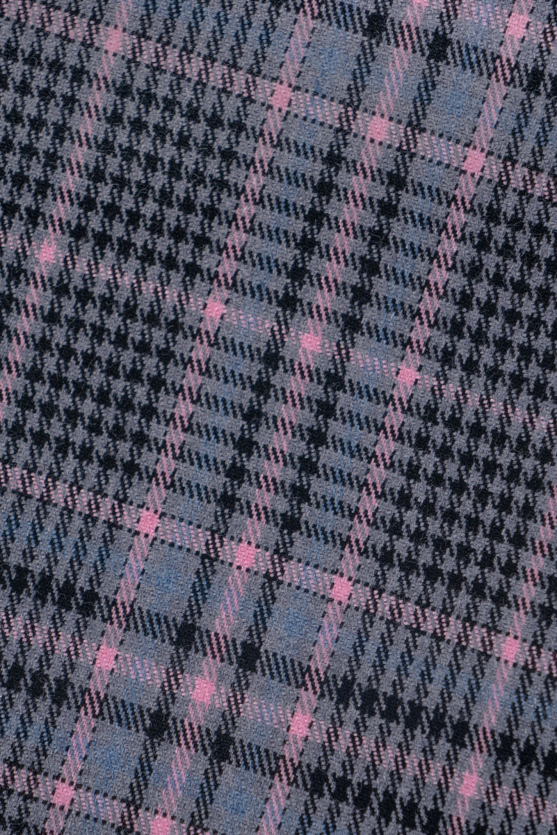 Itāļu kostīmu audums ar čekas motīvu pelēkā, melnā, rozā un zilā krāsā. Mīksts, nedaudz elastīgs rudens-ziemas audums. Ideāli piemērots kostīma, kleitas, svārku vai uzvalka šūšanai.
