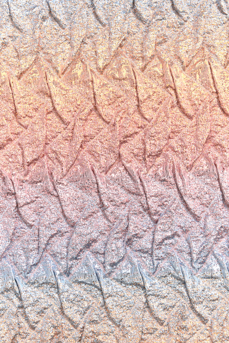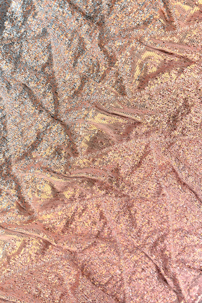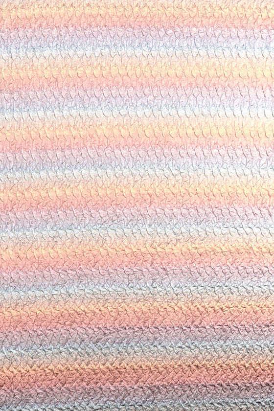 Itāļu žakarda kostīmu audums, kas austs daudzkrāsainu svītru veidā, kas atgādina varavīksni. Audums ir mīksts, elastīgs ar regulārām krokām, kas tam piešķir unikālu izskatu. Materiāls ir divslāņu, tāpēc nav nepieciešams izmantot oderi.