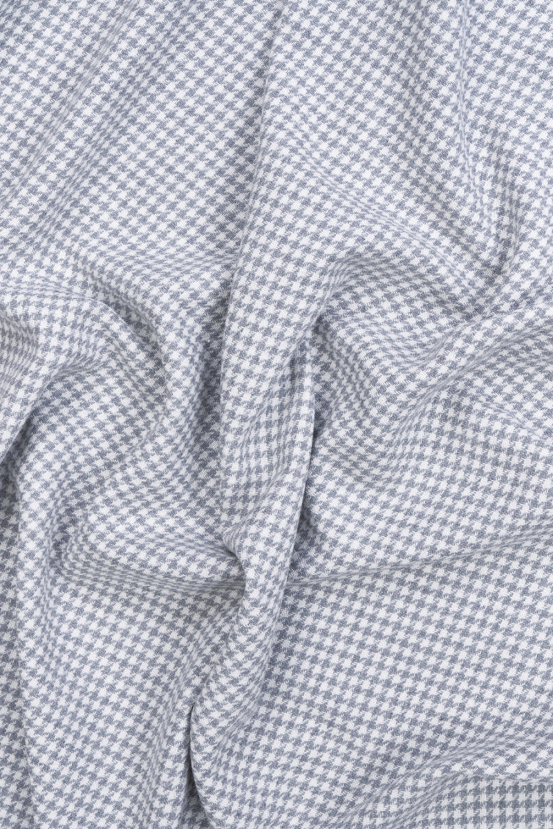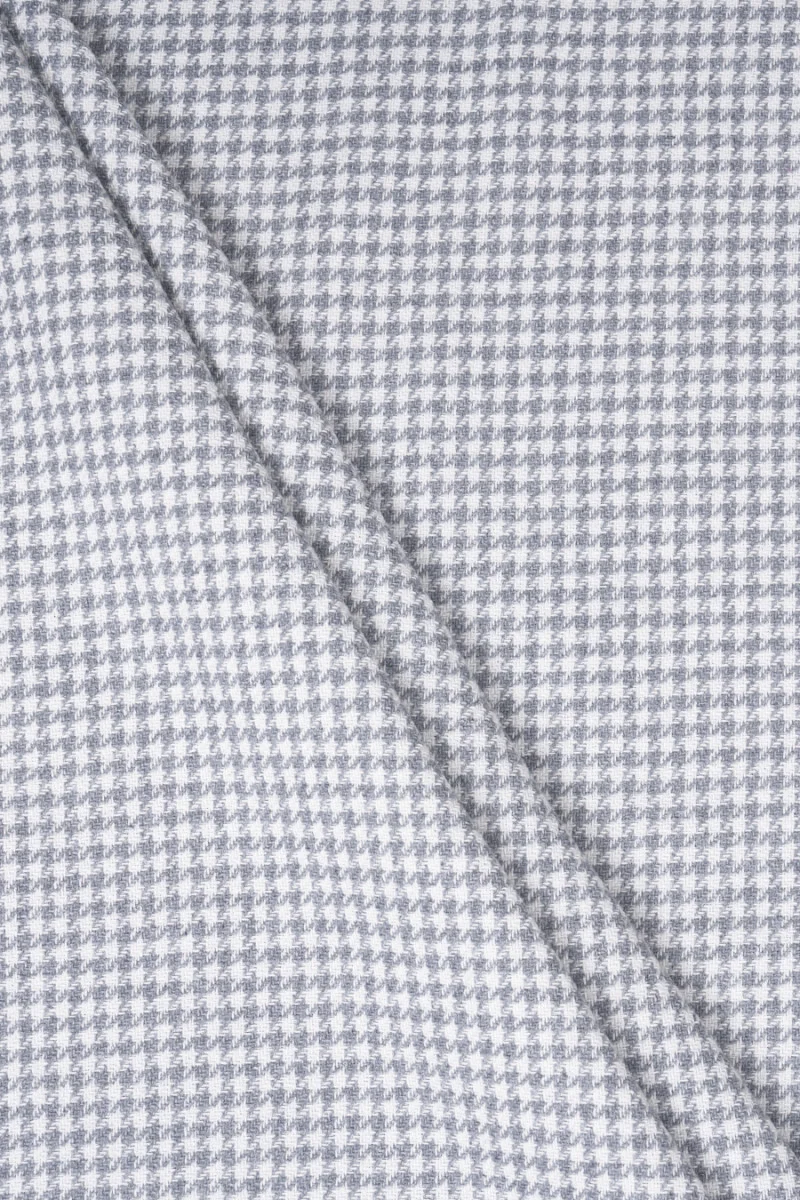 Itāļu kokvilnas audums ar linu un poliesteru ar nelielu vistas pēdas motīvu gaiši pelēkā un krēmkrāsā. Audums ir mīksts, neelastīgs, ar nedaudz vaļīgu austu, bet pilnīgi necaurspīdīgu. Klasisks piedāvājums biksēm, žaketēm, kleitām, svārkiem un šortiem.