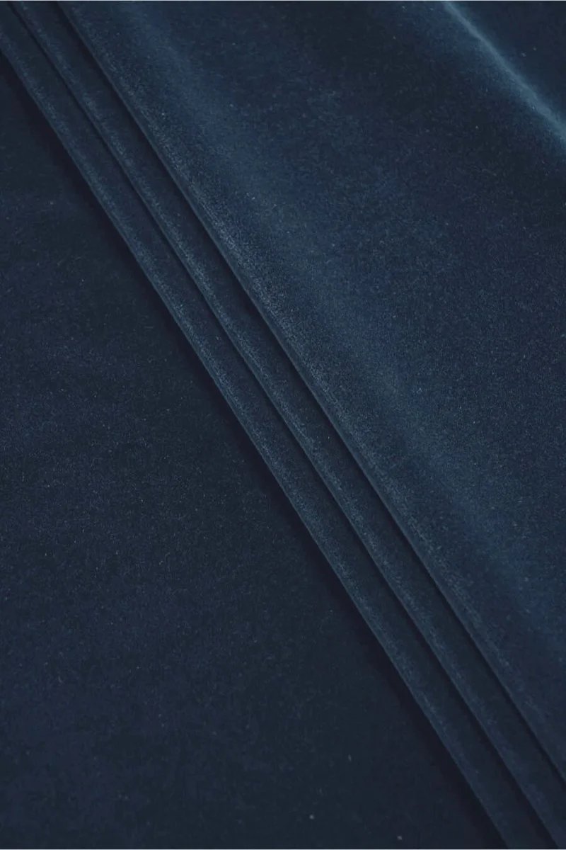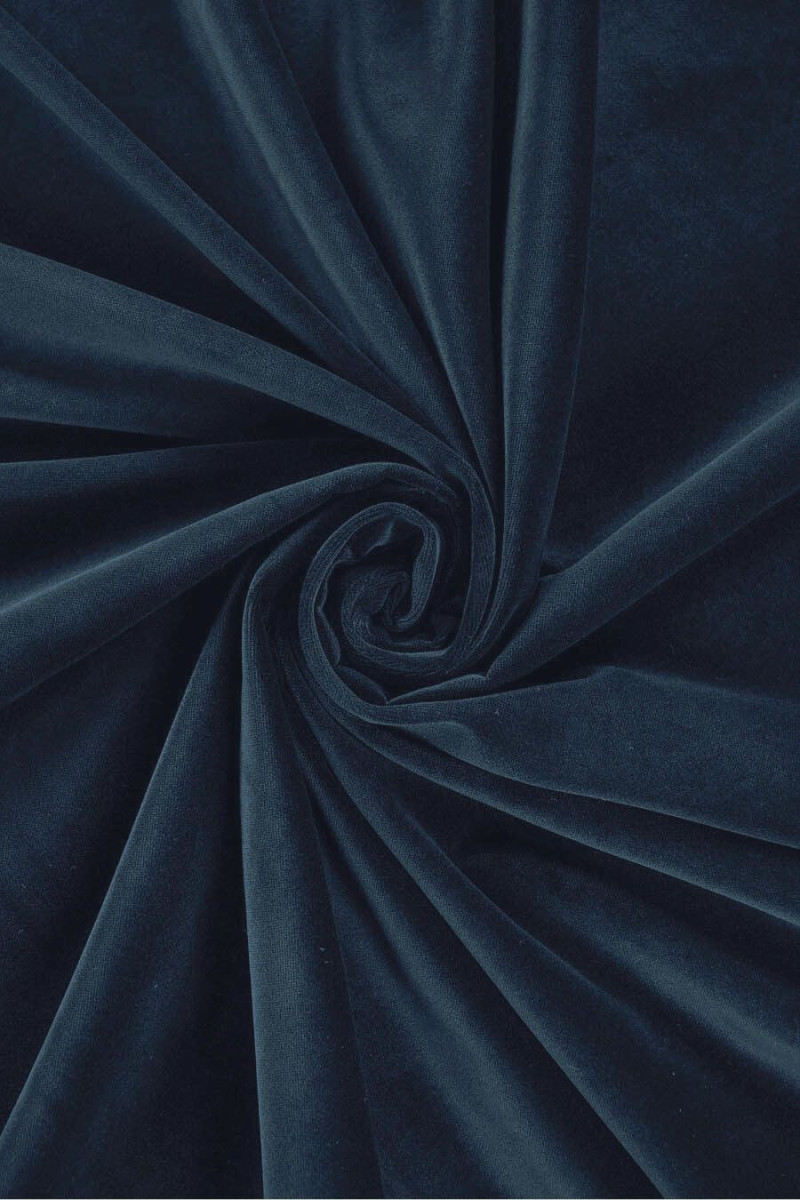Itāļu samta audums gaiši tumši zilā krāsā. 100% dabīgs audums, kas austs no kokvilnas ar raksturīgiem īsiem matiem. Ideāls piedāvājums kostīma vai jakas šūšanai, jo samts ir mīksts, neelastīgs ar kompaktu austu. To var plaši izmantot arī iekšējā apdarē, piemēram, aizkaru vai spilvenu šūšanai.