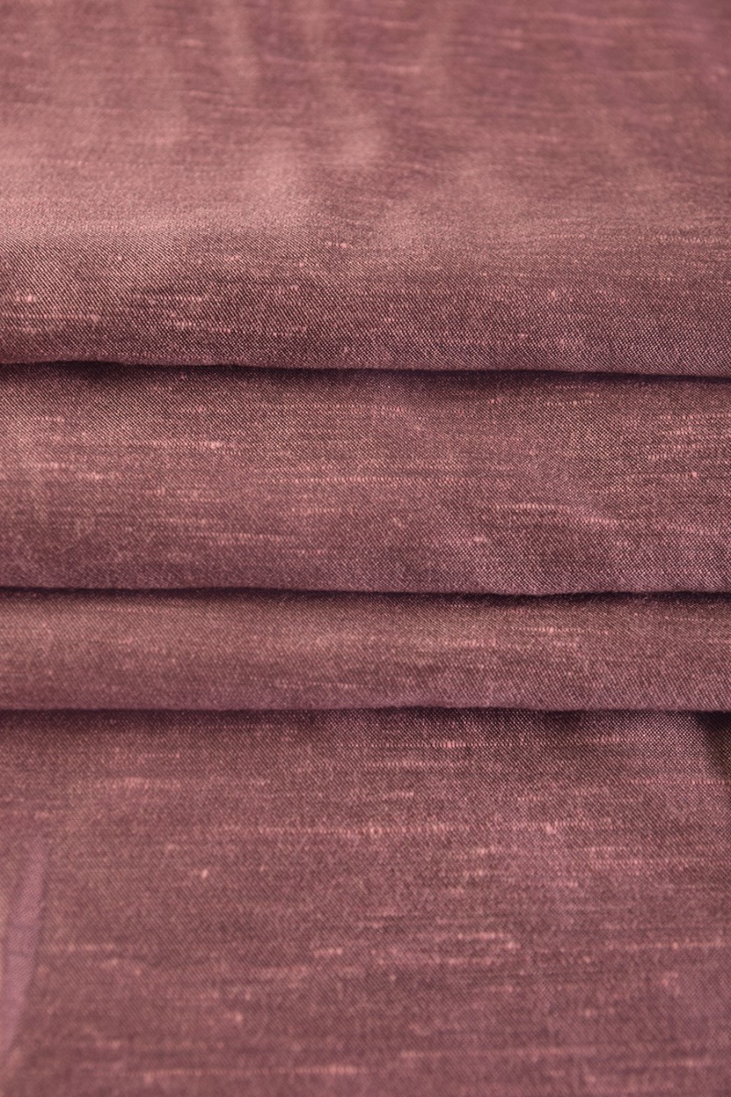 Divu toņu viskoze (rozā un melns pavediens) ala shantung ar klasisku, pirmatnēju austu ar "barbs". Mīksts audums, plastmasas struktūra. Antīkās rozā krāsa.