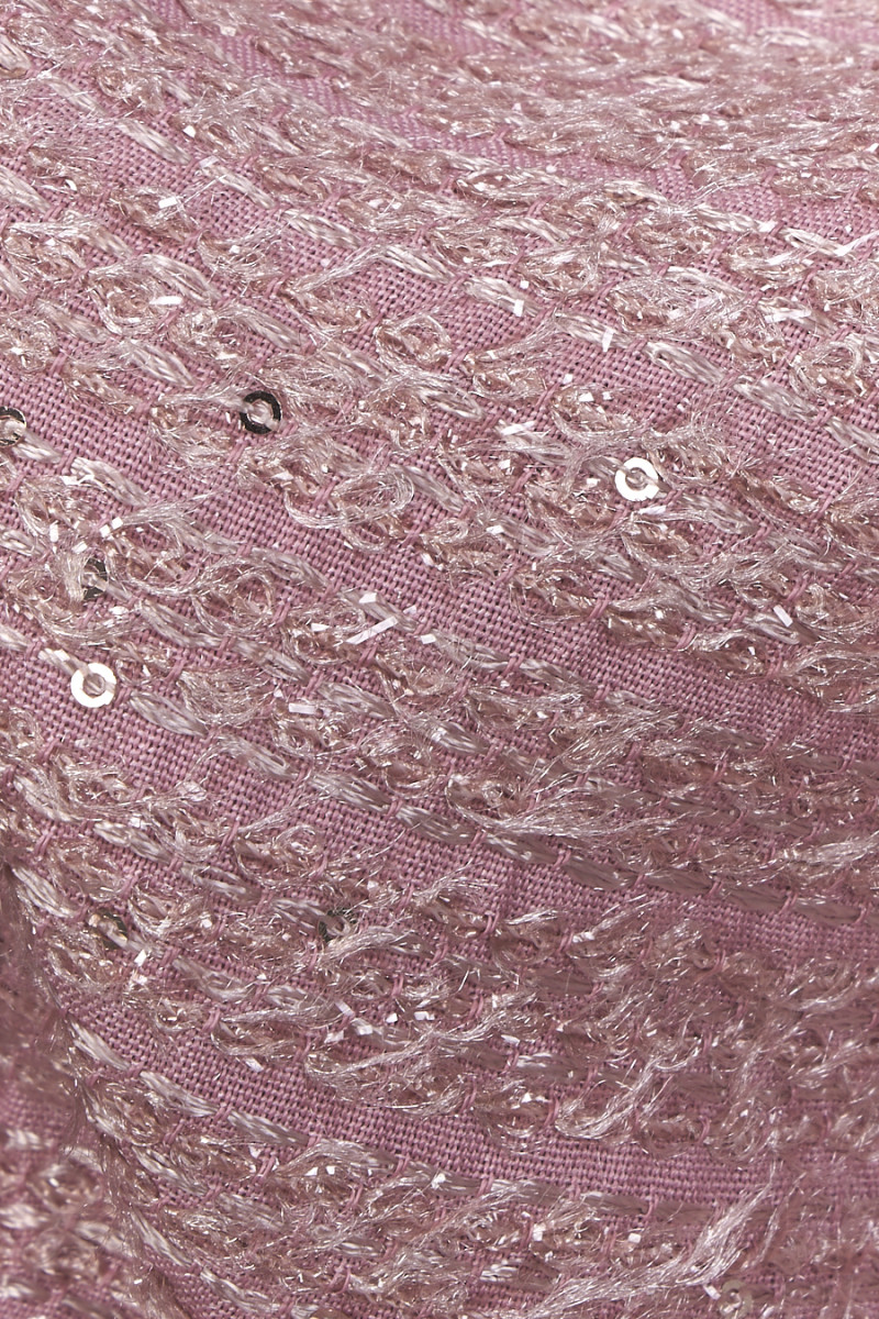 Itāļu chanel kostīmu audums netīri rozā krāsā. Gluds audums ar horizontālu šuvi 1 cm platumā, dekorēts ar maziem fliteriem. Vidēji biezs, neelastīgs, mīksts audums. Ideāli piemērots kleitas, svārku šūšanai vai dekoratīviem nolūkiem.