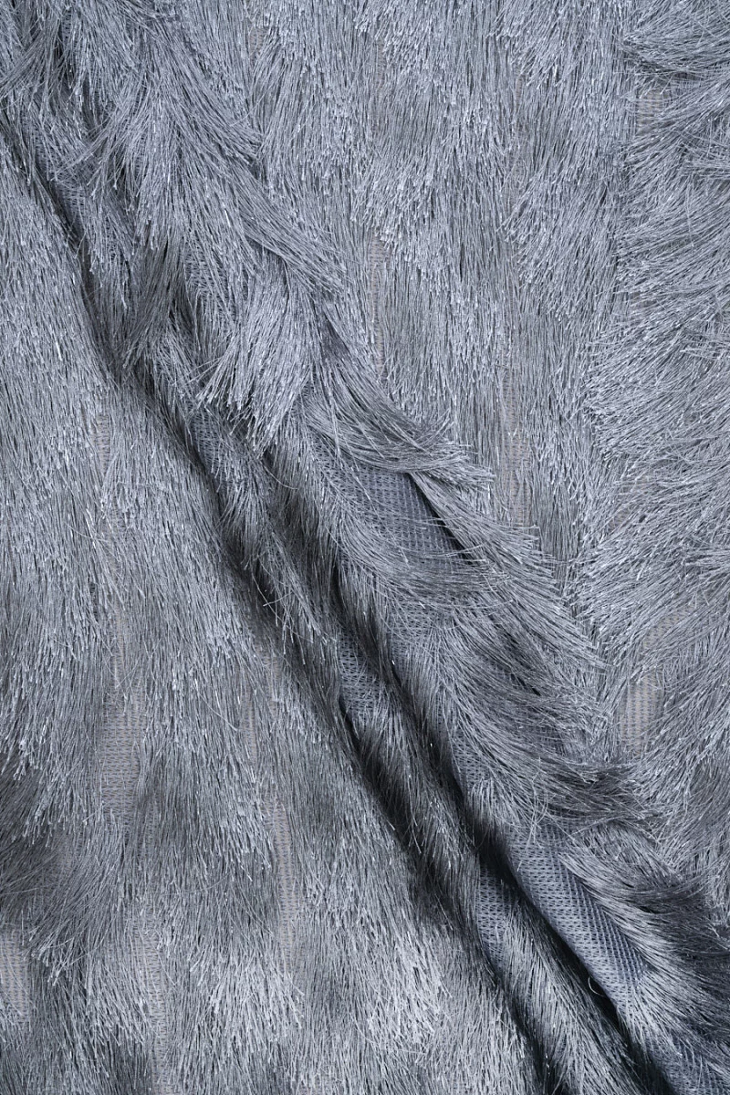 Vakara audums ar uzšūtiem pelēkiem pušķiem un caurspīdīgām lentēm. Pušķi šūti viļņa formā. Tīkls ir 140 cm plats, bārkstis ir 125 cm platas. Audums ir nedaudz caurspīdīgs, elastīgs un mīksts - skaists piedāvājums vakarkleitas, blūzes, svārku šūšanai.