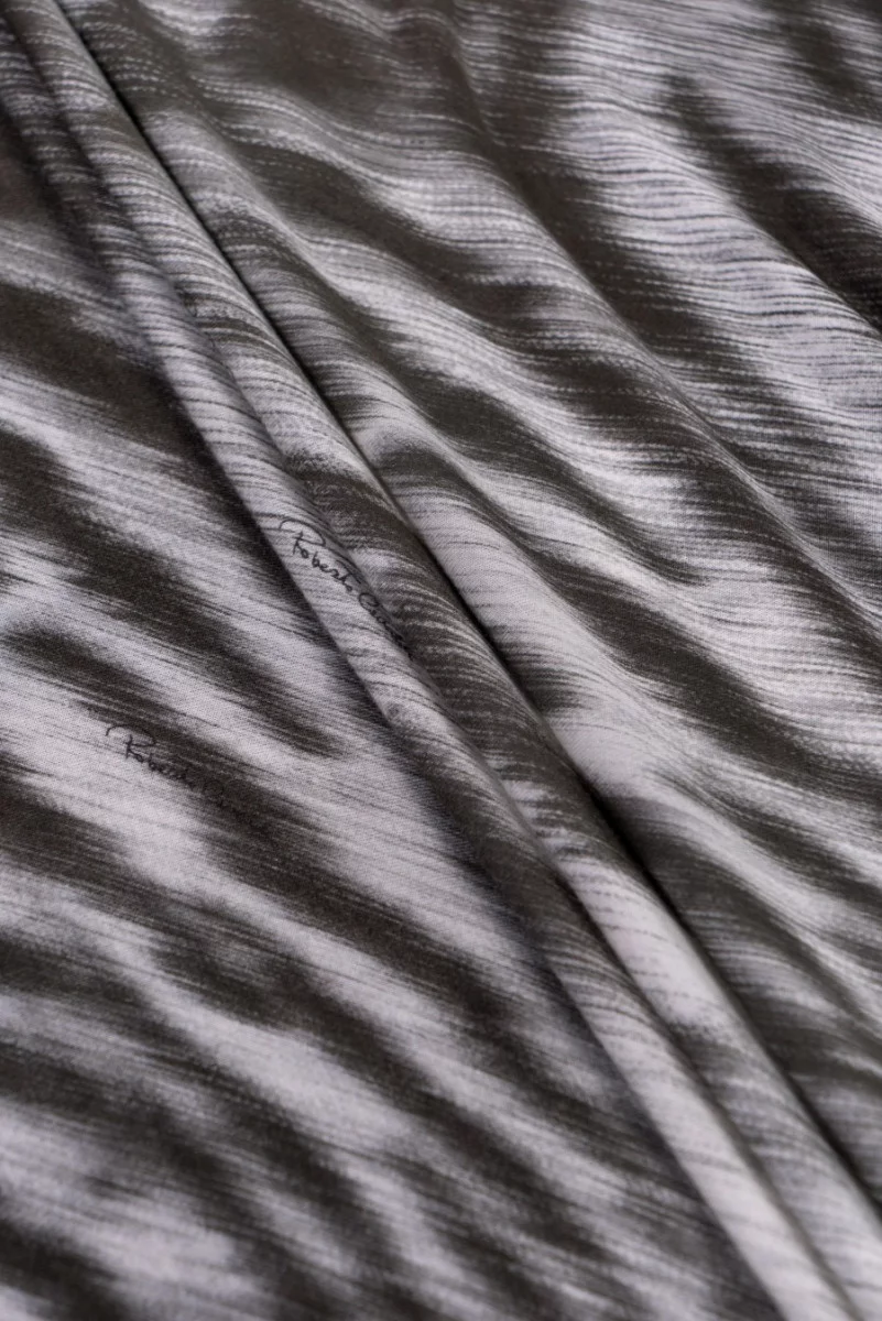 Itāļu viskozes trikotāžas audums, parakstīts ar slavenā modes dizainera vārdu. Elastīgs audums, ļoti labas kvalitātes. Dzīvnieku modelis, kas atgādina tīģeri. Krāsas: pelēka, olīvu. Ideāli piemērots kleitas, svārku, blūzes šūšanai.