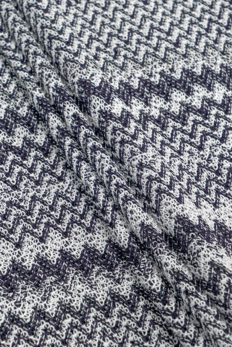 Džemperis trikotāžas audums balts un tumši zils zigzaga raksts