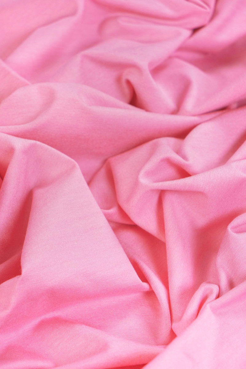 Itāļu viskozes trikotāžas audums gaiši konfekšu rozā krāsā. Lieliski piemērots blūzes vai t-krekla šūšanai.