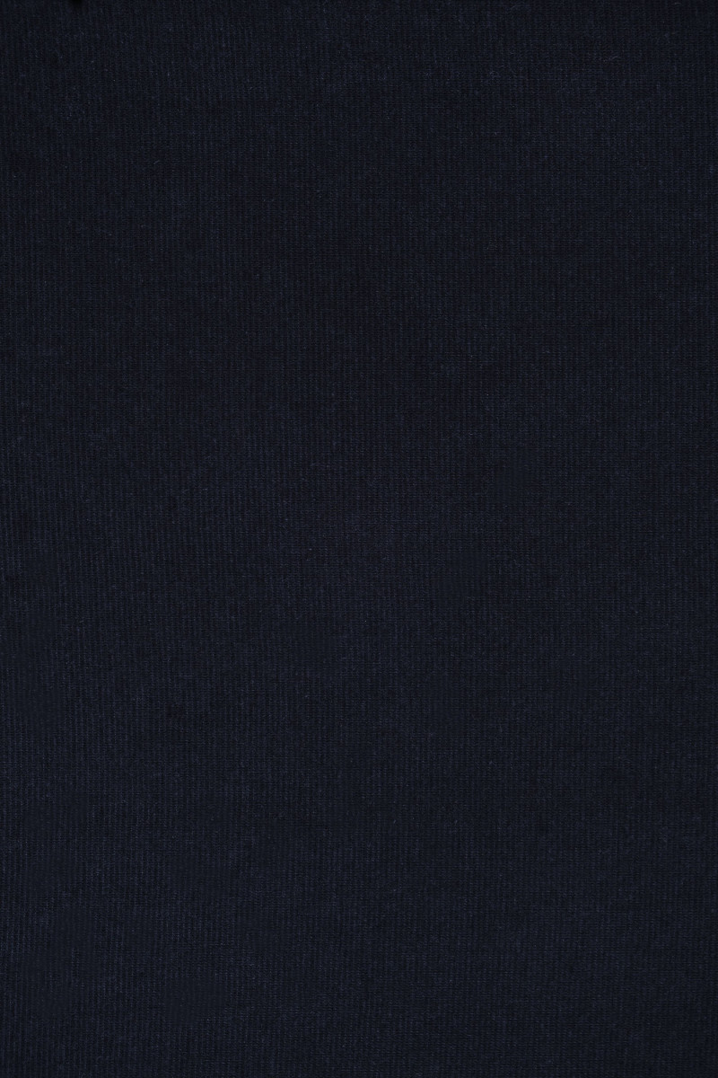 Itāļu viskozes rievots trikotāžas audums tumši tumši zilā krāsā. Audumam ir 45 cm plata "piedurkne". Audums ar raksturīgu, rievotu austu - ideāli piemērots sporta krekla vai džemperu apdarei.
