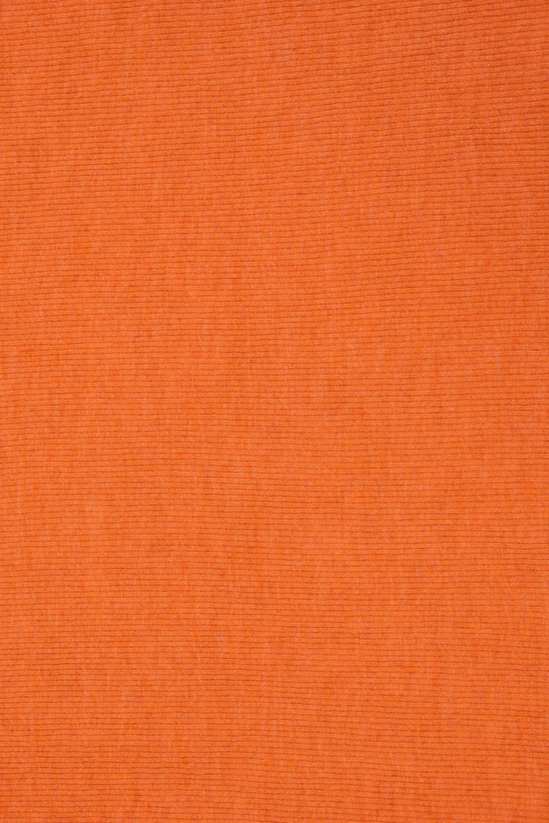 Itāļu kokvilnas trikotāžas audums oranžā krāsā ar platumu 120 cm. Audums ar raksturīgu, rievotu austu, kas atgādina vati - ideāli piemērots kleitas vai blūzes šūšanai.
