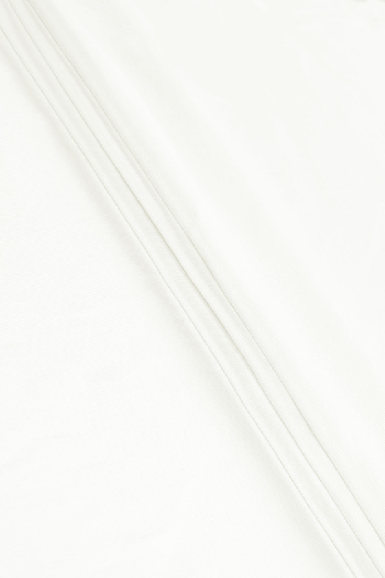 Itāļu kokvilnas sacīkšu trikotāžas audums krēmkrāsā - nāk ar 50 cm platu piedurkni. Audums ar raksturīgu, rievotu austu - ideāli piemērots sporta kreklu vai sporta bikšu apdarei.