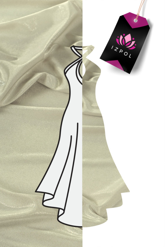 Itāļu poliesters adīts aukstā bēšā krāsā ar plānu sudraba diegu, kas rada spīdīgu spīduma efektu. Elastīgs, smags, plūstošs trikotāžas audums - lieliski piemērots vakara blūzes vai kleitas šūšanai.