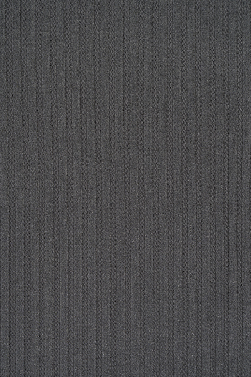Itāļu trikotāžas audums ar plašu ribu austu (0,5 cm) pelēkā krāsā. Mīksts, ļoti elastīgs, necaurspīdīgs, patīkams pieskārienam trikotāžas audums - lieliski piemērots kleitas, svārku vai blūzes šūšanai.