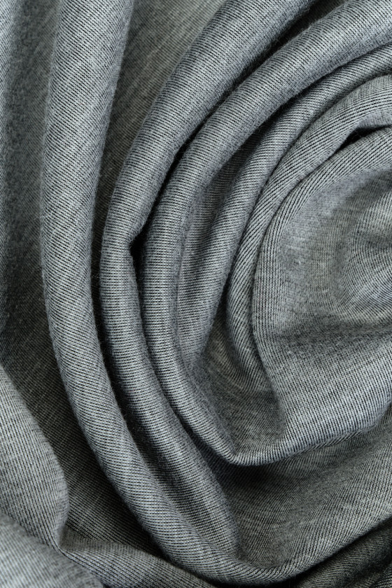 Itāļu divpusējais džersija audums - viena puse pelēkā melanžā, otra melna. Materiāls ir necaurspīdīgs, mīksts, elastīgs, un to var šūt bez linas. Tas ir lieliski piemērots ikdienas apģērbam, piemēram, sporta krekliem, jakām, kleitām, biksēm.