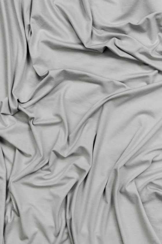 Itāļu trikotāžas audums, kas austs no mikromodāla un kašmira ļoti gaišā, pelēkā krāsā. Trikotāžas audums ir plāns, bet diezgan necaurspīdīgs, ideāli piemērots blūzēm, mīksts, patīkams pieskarties un elastīgs. Mēs iesakām to blūzēm, topiem, T-krekliem un legingiem.